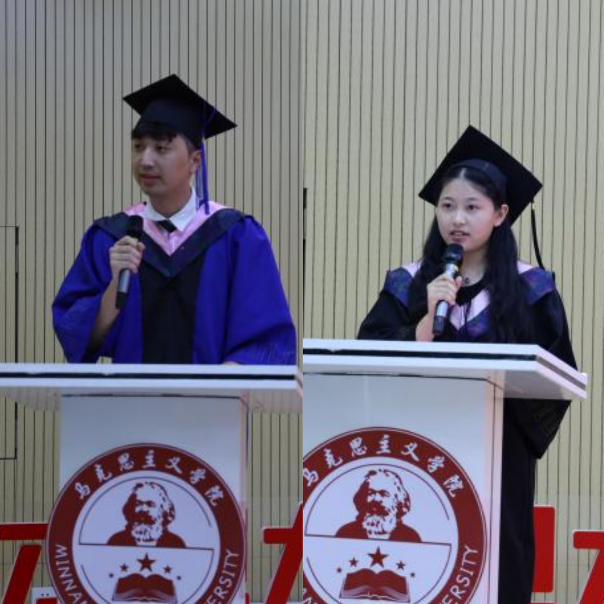 同时,在校研究生代表2022级思想政治教育专业陈鸿烨和在校本科生代表2020级思想政治教育专业2班郑培烨送上祝福。