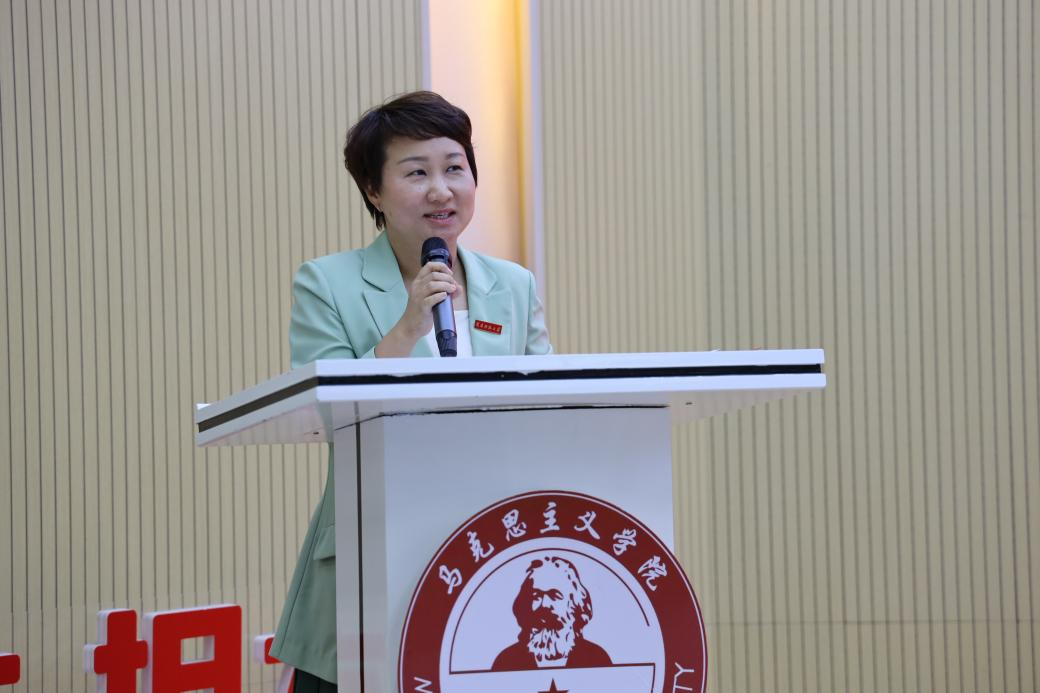 其次,硕士生导师郑育琛副教授作为教师代表发言。她希望在座的各位学子,在未来的工作中,心中有理想、脚下有力量,奋勇争先,接续奋斗,创造无愧于时代的美好人生。