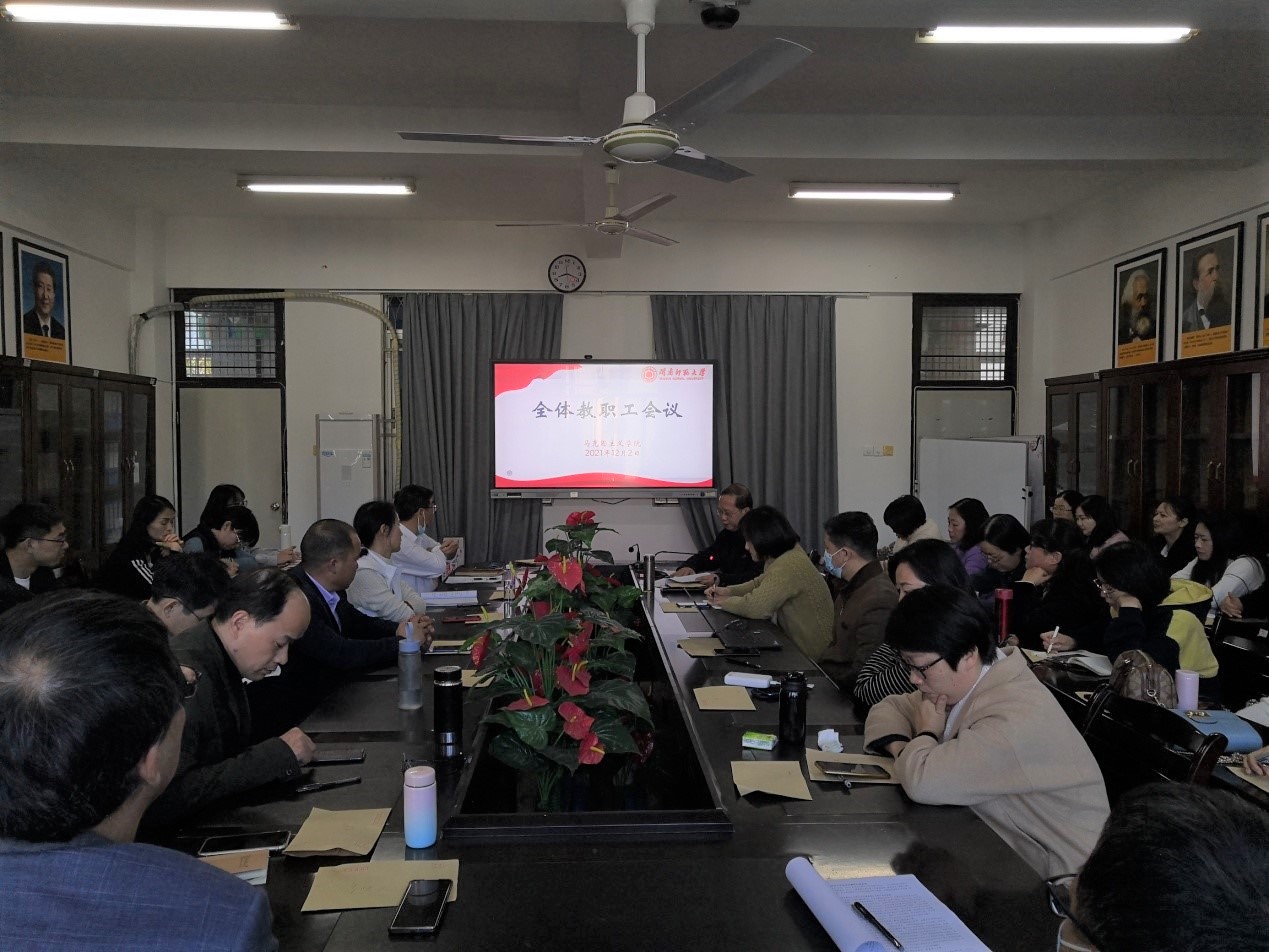 12月2日下午,永利23411集团党委召开党委理论学习中心组学习(扩大)会,传达学习贯彻中国共产党福建省第十一次代表大会和省委十一届一次全会精神,强调要把学习宣传贯彻工作作为当前和今后一个时期的重要政治任务,加快推进学院高质量发展,为新发展阶段新福建建设作出应有的贡献。对进一步落实党的十九届六中全会精神学习贯彻工作做了细化部署。学院全体教职工参加会议,会议由党委书记李定庆主持。