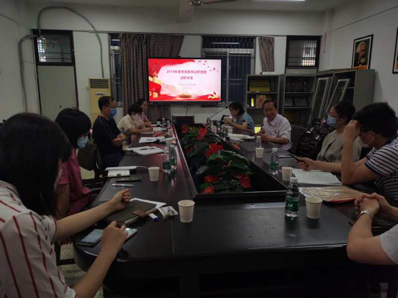 5月14日下午,我院党委在综中404召开2019年党支部书记抓党建述职大会,其中有8名党支部书记进行现场述职,1名支部书记在线上述职。会议由党委副书记陈佳薇主持,党委书记李定庆,党委组织员黄艳红参加会议。