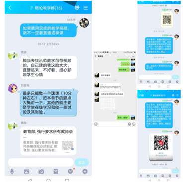 蓝小燕老师说:刚开始准备阶段“手忙脚乱”。在学习通平台创建课程时,遇到技术问题,不断与相关技术人员请教;创建班级时,寻找各班学委,取得联系后,在学委的积极配合下,把学生拉入班群;备课阶段,结合线上提供的优势教学资源,取长补短,时时“充电”......真正进入线上教学实践过程“问题不断”。根据其他同事运用学习通平台上课反馈的效果,存在的实际操作不足、上课高峰期间网络拥堵等情况,再根据有的老师推荐的其他线上平台,我重新创建了QQ群开展线上教学,该平台直播网卡不多,同学们普遍反映良好,之后,QQ直播(群课堂)逐渐成为主要线上教学平台。运行过程中,在相关技术难点问题、开发QQ直播的新功能方面,同学们成为了我的“军师”,大家不断给我出谋划策,不断弥补线上教学的不足.....