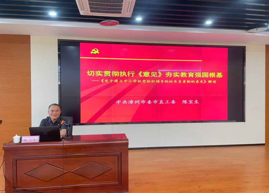培训期间,yl23411永利生物科学学院党委书记连恩德、中共漳州市委市直工委三级调研员陈宝生分别为学员们做了《关于新时代学校永利集团创新的思考》、“切实贯彻执行《意见》,夯实教育强国根基——《关于建立中小学校党组织领导的校长负责制的意见》解读”的专题讲座。