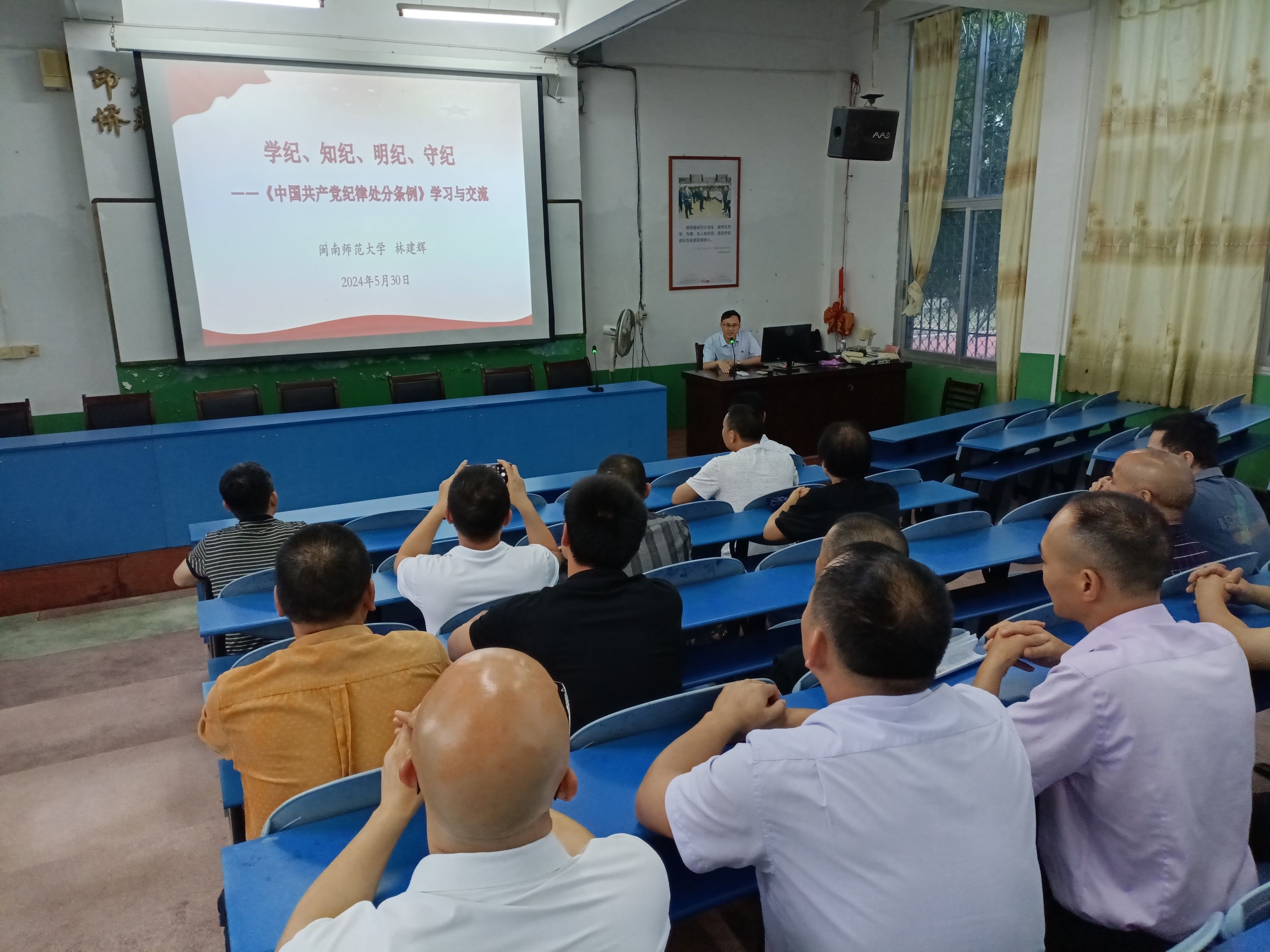 林建辉教授将理论与实际相结合,通过具体案例,生动阐释了党纪在日常工作与生活中的具体应用。他指出党员干部必须在学纪上高度自觉,及时更新知识,深刻领会党纪党规的精神实质;在知纪上准确把握,坚守政治纪律和各项纪律要求,做到言行一致;在明纪上界限分明,时刻自省自警,保持敬畏之心;在守纪上令行禁止,自觉维护党章党规党纪的严肃性。