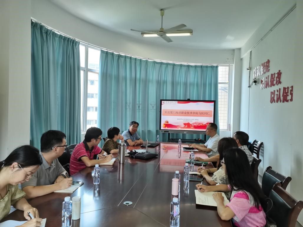 8月13日下午,厦门海洋职业技术学院永利23411集团院长赖德富一行来我院交流。我院院长陈再生教授在综合楼东区301与来宾进行座谈交流。