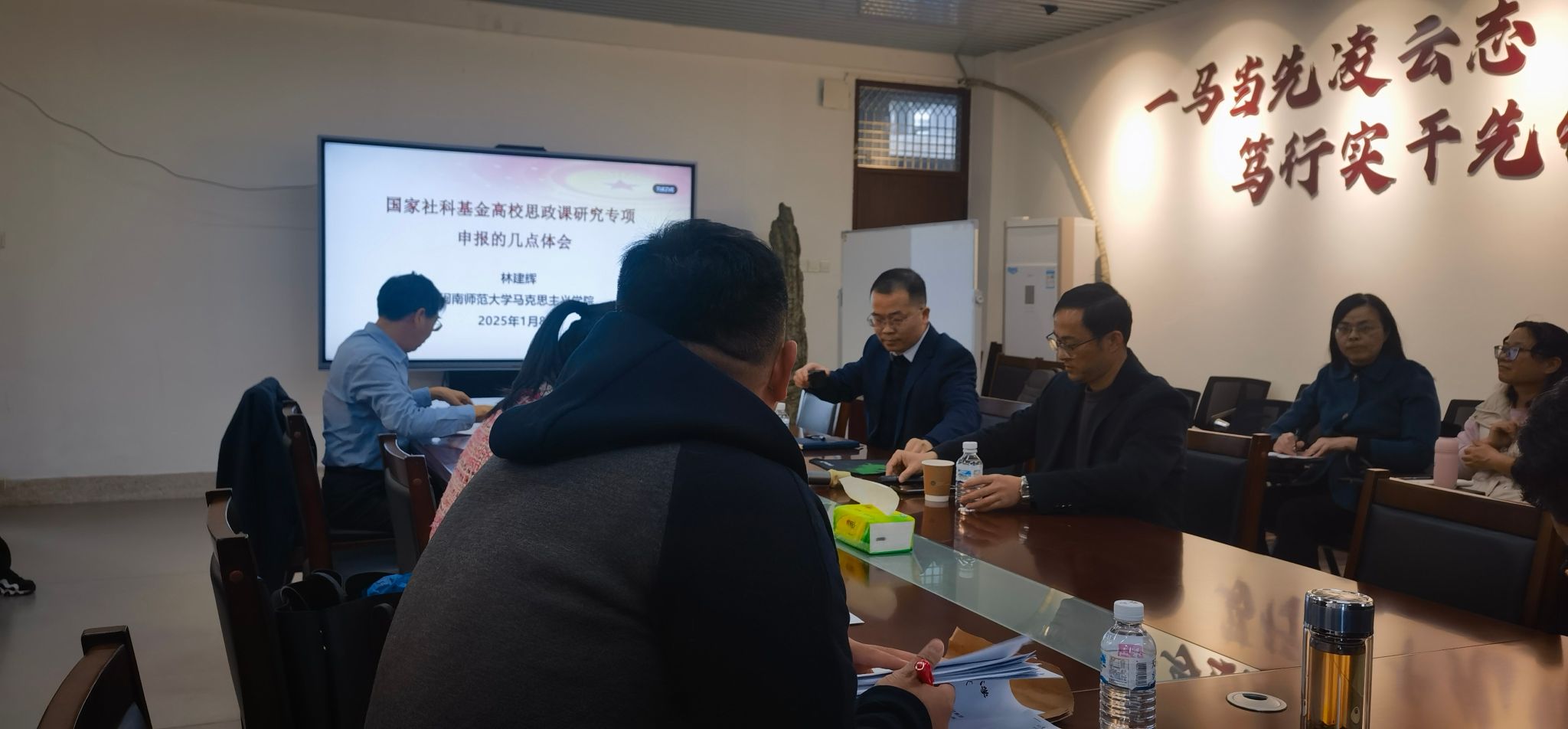 为切实做好2025年度科研项目申报工作,提升2025年国家社科基金申报质量,我院于1月8日上午在综合楼中区404会议室举行国家社科基金申报经验分享会。此次会议邀请到法学院副院长方劲教授和我院林建辉教授分享国家社科基金申报经验,全院全体教师参加了会议,会议由我院院长陈再生教授主持。