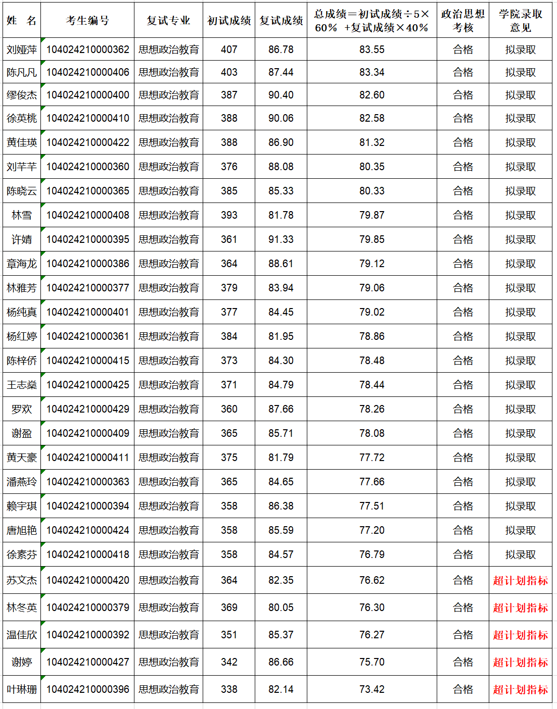 永利23411集团2024年一志愿复试结果及拟录取情况公示(思想政治教育专业)