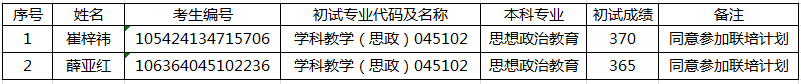 永利23411集团2024年硕士研究生学科教学(思政)专业调剂复试(联培计划)名单公布