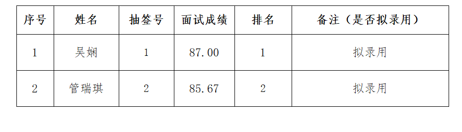 具体面试成绩总表公示如下: