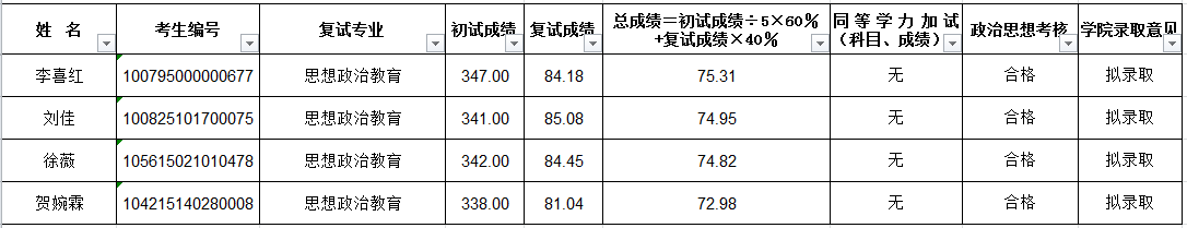 调剂复试(第一批)备选名单中从高到低依次递补4名考生。