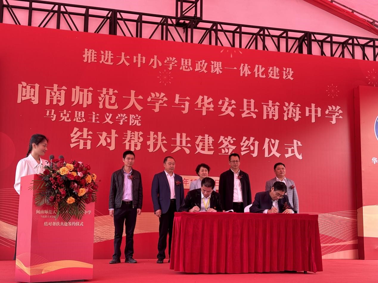 12月15日,我院党委书记方琼、院长陈再生、系主任景云和学院研究生代表赴华安,与南海中学举行结对帮扶共建签约仪式,中共华安县委常委、宣传部部长蔡森成,县教育局党委书记、局长汤奇才,华安县教育局和仙都镇、南海中学师生代表参加了签约仪式。