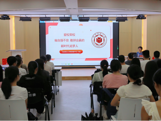 为教育引导研究生树立崇高理想信念,厚植爱国荣校情怀,9月26日下午,学院党委书记方琼于达理活动中心三楼为我院2023级全体研究生召开“爱校荣校,做自强不息,敢拼会赢的新时代追梦人”的理想信念专题教育讲座,讲座由团委副书记潘怀杰老师主持。