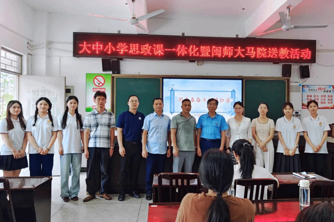 5月22日,在我院院长陈再生、辅导员潘怀杰的带队下,我院组织思政学科送培送教讲师团前往云霄云陵工业开发区第一学校开展下沉式培训活动,走进中学部、小学部,扎实推进大中小学思政课一体化建设。(通讯员 林孟)