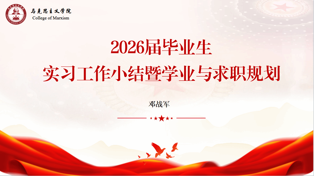 6月25日下午,我院在马院礼堂召开2026届学生实习工作小结暨学业与求职规划会,院党委副书记邓战军到会指导,辅导员沈书伊、全体2026届学子参会。(通讯员 沈书伊)