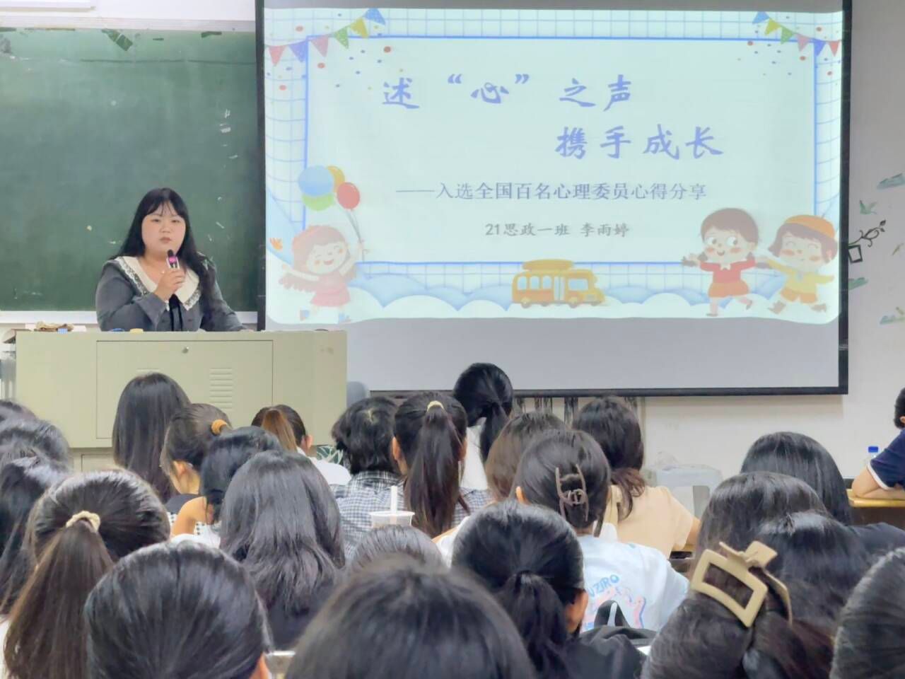 11月3日晚,我院入选“全国百名心理委员风采展”的21级思政一班心理委员李雨婷为全体心理委员、宿舍心理信息员进行了以“述‘心’之声 携手成长”为主题的心得分享。(通讯员 施心瑜)