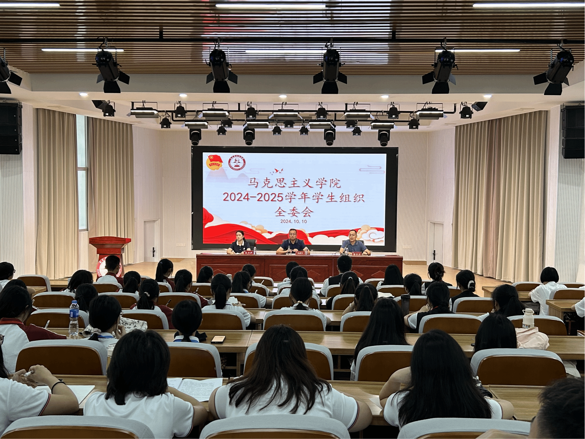 10月10日下午,我院于校东门马院礼堂举办永利23411集团2024-2025学年学生组织全委会,会议由团委副书记潘怀杰主持,党委副书记邓战军、辅导员沈书伊及学院学生组织主要学生干部参加。(通讯员 郑语萍)