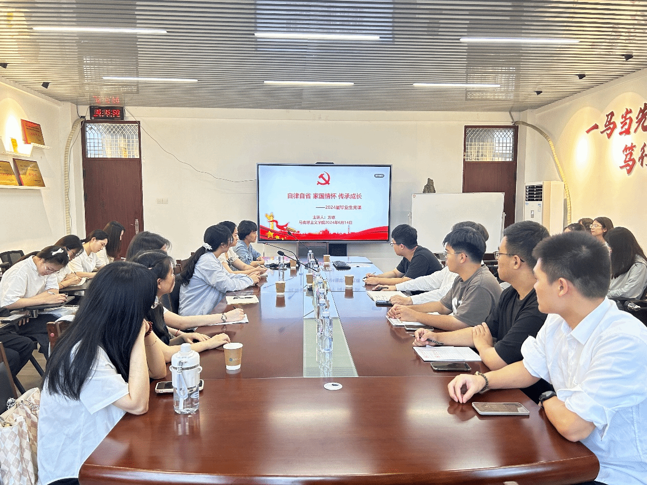 6月14日下午,我院党委书记方琼于综合楼中区404会议室为2024届毕业生党员讲授题为《自律自省 家国情怀 传承成长》的“最后一堂党课”,全体2024届在校毕业生党员参加。(通讯员 吴育曼)