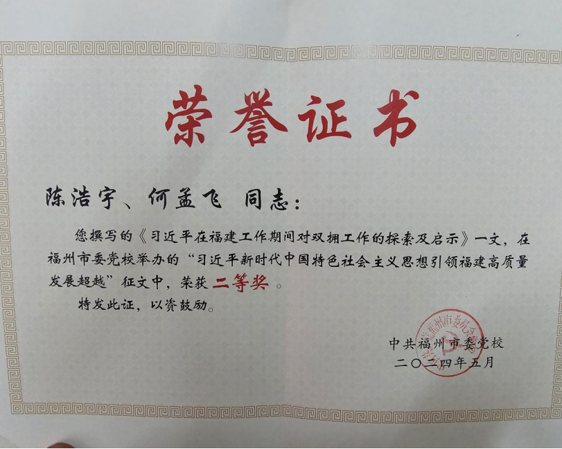 5月28日,“习近平新时代中国特色社会主义思想引领福建高质量发展”理论研讨会在中共福州市委党校成功举办。我院2022级马克思主义中国化研究专业硕士研究生陈浩宇参会,参会论文《习近平在福建工作期间对双拥工作的探索及启示》获二等奖。(通讯员 陈浩宇)