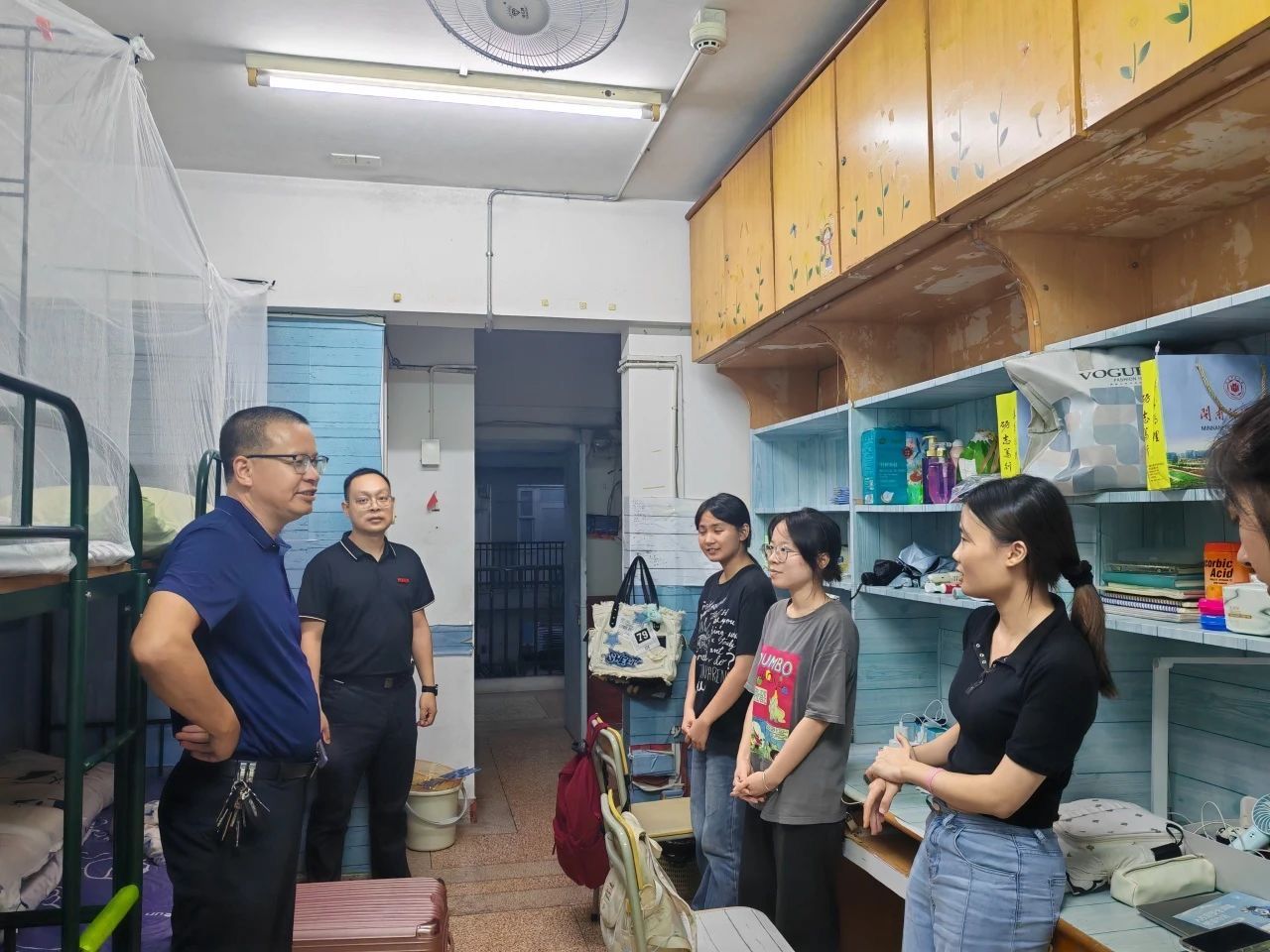 9月7日下午,我院党委副书记邓战军、副院长林海燕、团委副书记潘怀杰、辅导员任程龙、沈书伊老师及学生干部一同走访新生宿舍(通讯员 赖小燕)