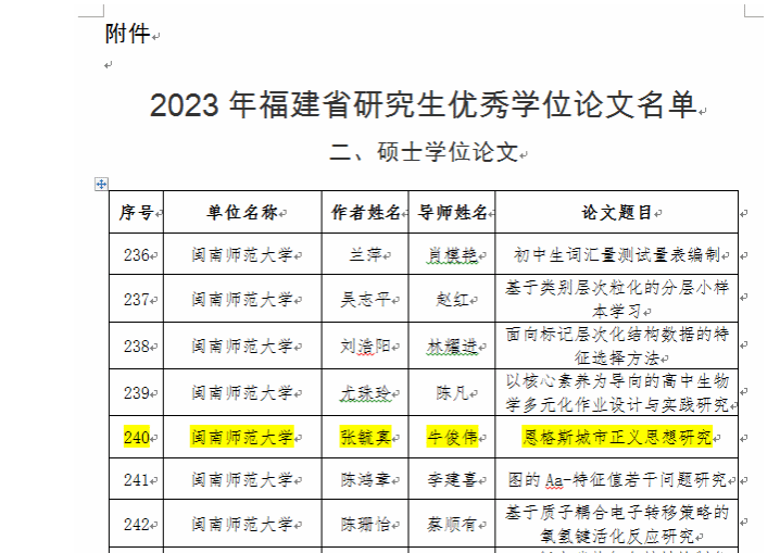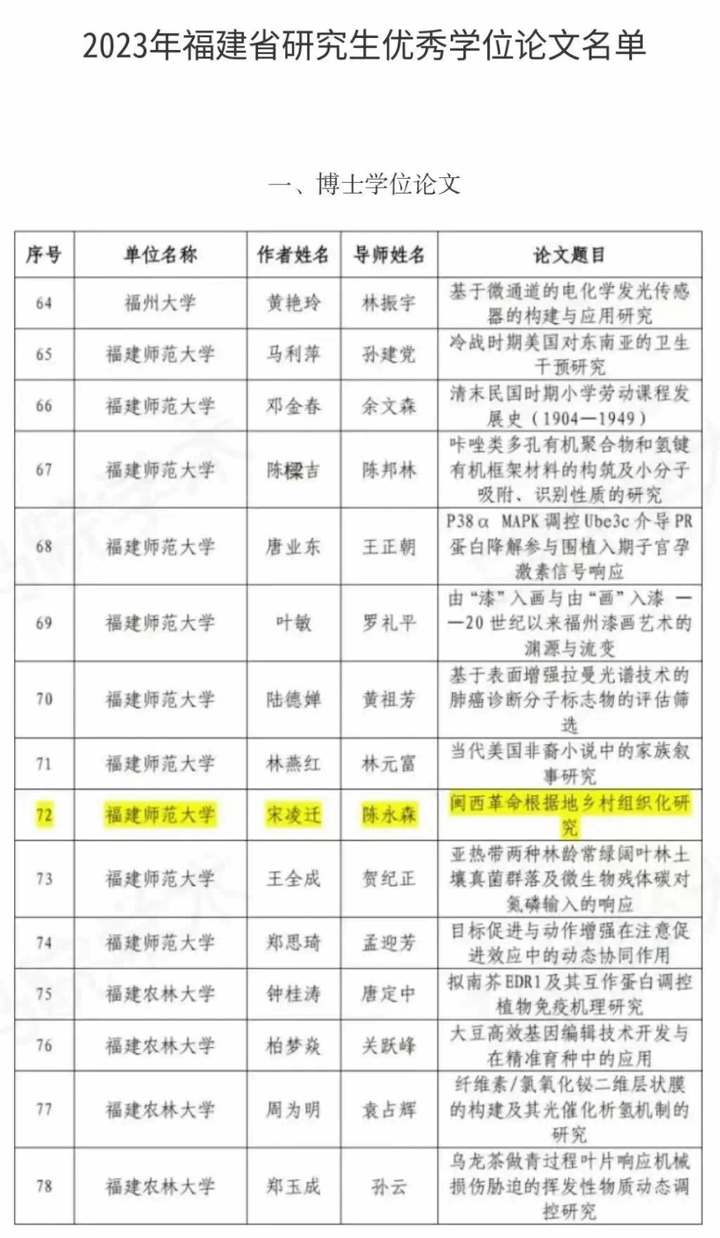 近日,福建省学位委员会办公室《关于公布2023年福建省研究生优秀学位论文评选结果的通知》文件下发,我院教师宋凌迁的博士学位论文获评2023年福建省研究生优秀研究生学位论文。(通讯员 崔梓祎)