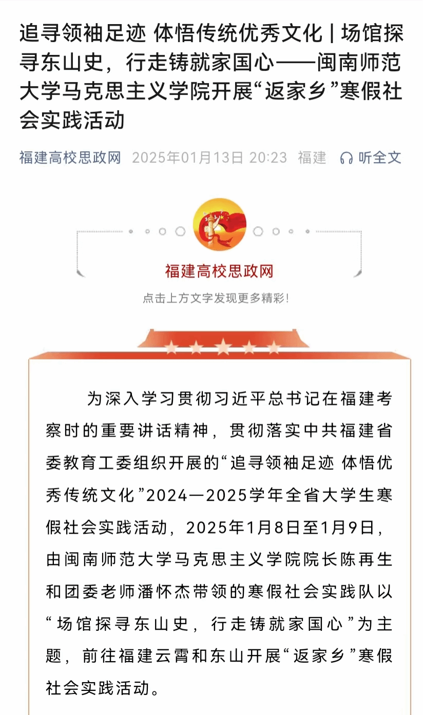 追寻领袖足迹 体悟传统优秀文化 | 场馆探寻东山史,行走铸就家国心——永利23411集团开展“返家乡”寒假社会实践活动。