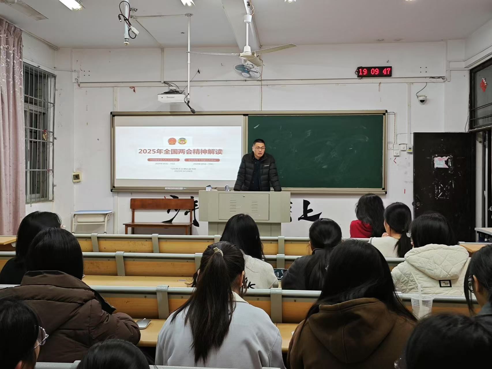 3月29日晚上,我院读书社于综南202举办“2025年全国两会精神解读”专题分享会。专题分享会由张信练老师主讲,2023级、2024级读书社成员参加。(通讯员 刘铭毅)